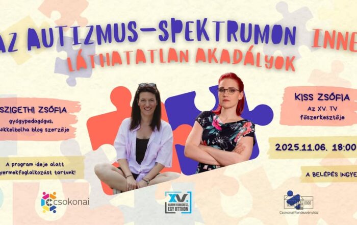 -beszélget holnap este 18:00 -tól a Csokonai Rendezvényház Kamaratermében AZ AUTIZMUS - SPEKTRUMON INNEN címmel Kiss Zsófia, az xv. tv főszerkesztője, két autista kislány édesanyja és Szigethi Zsófia, gyógypedagógus, az azonos című könyv szerzője. November [...]