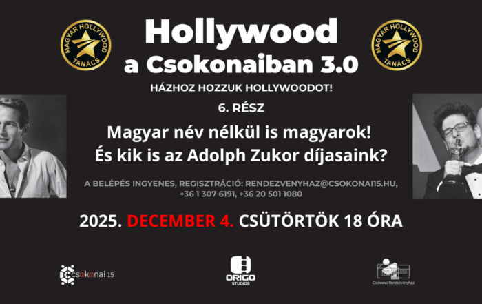 🎬 ÚJ IDŐPONT! A korábban meghirdetett november 27. helyett december 04-én (csütörtökön) 18:00 órakor várjuk az érdeklődőket a Csokonai Rendezvényházban a Hollywood a Csokonaiban 3.0 sorozat következő előadására! Az est témája: „Magyar név nélkül is [...]